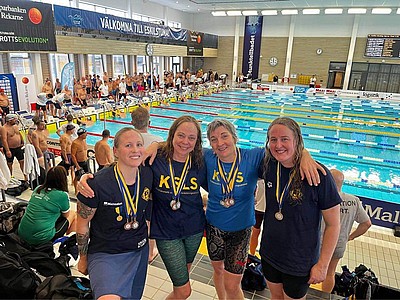 Karin tog SM-guld på 200 frisim och bara en stund senare brons-medalj på 200 ryggsim. Glädjande nog avslutade KSLS med brons i damlagkappen 4x50 frisim i åldersgruppen 200-239 år (snittålder 50 år).